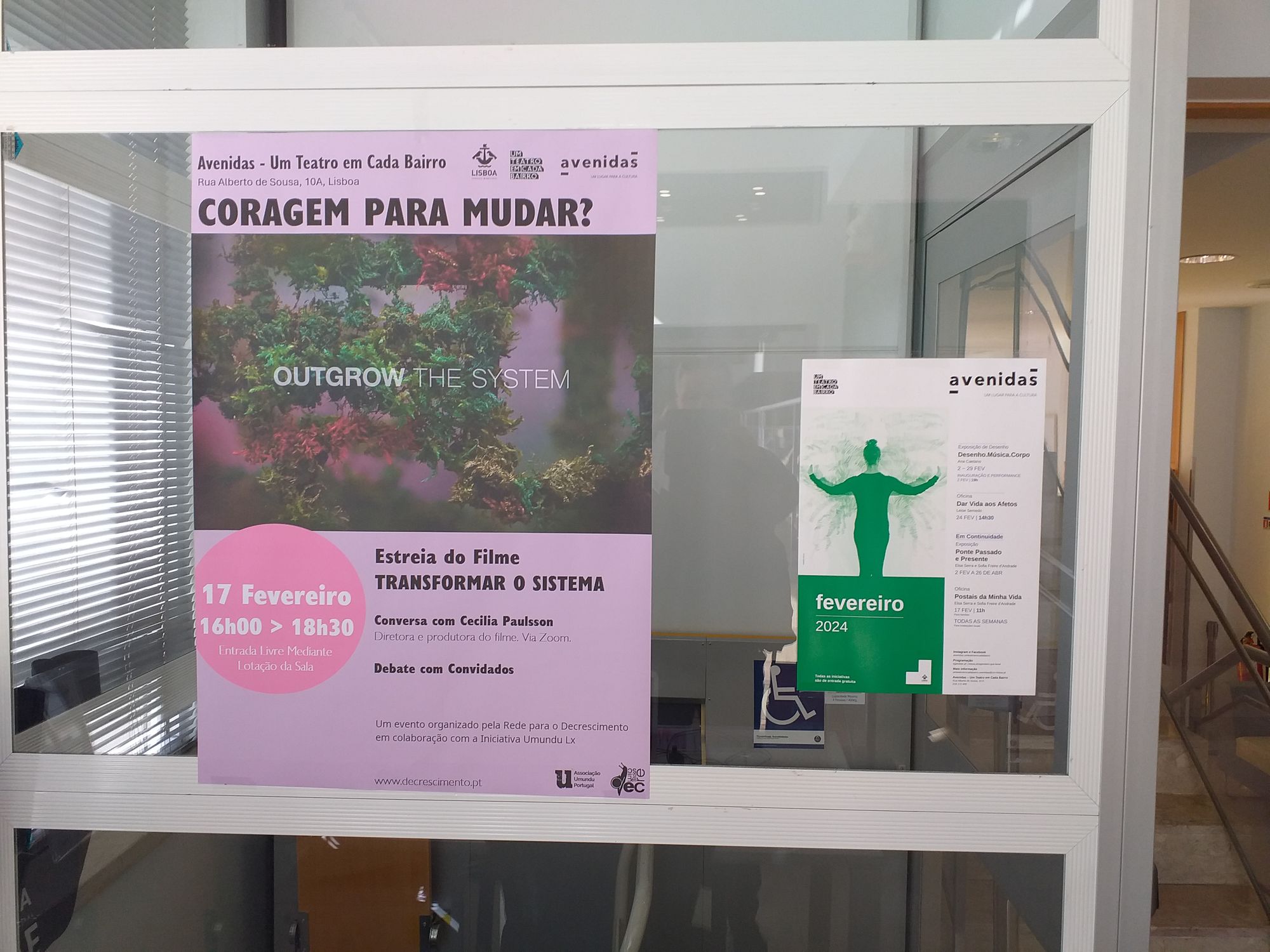 A participação aconteceu em torno da exibição do filme Legacy, notre héritage de Yann Arthus-Bertrand, seguida de uma conversa sobre as questões como impacto humano no meio-ambiente, o antropoceno, as alterações climáticas, e o decrescimento enquanto corrente crítica e alternativa. A discussão foi acesa e participada, partindo de um filme esteticamente apelativo, que nos conecta fortemente ao mundo natural - que o autor viu diminuir drasticamente perante os seus olhos, durante uma vida de fotógrafo de Natureza. Perante o descalabro, e a impotência das pequenas ações individuais, perante o curto horizonte temporal de ação, e perante a proposta contra-cultural do decrescimento, é fácil desmoralizar, despolitizar, desistir. A conversa partiu daí, desse constante, desse sentimento avassalador de ver tanta coisa ruir sem que nada seja feito - ou possível. Mas evoluiu, questionando-se, crescendo, evocando coragens que ainda não temos enquanto movimento e sociedade civil, perguntando perguntas difíceis, equacionando estratégias e objetivos, moralidades e finalidades, e o compasso histórico, humano, presente e vivo que há em cada um@ de nós.